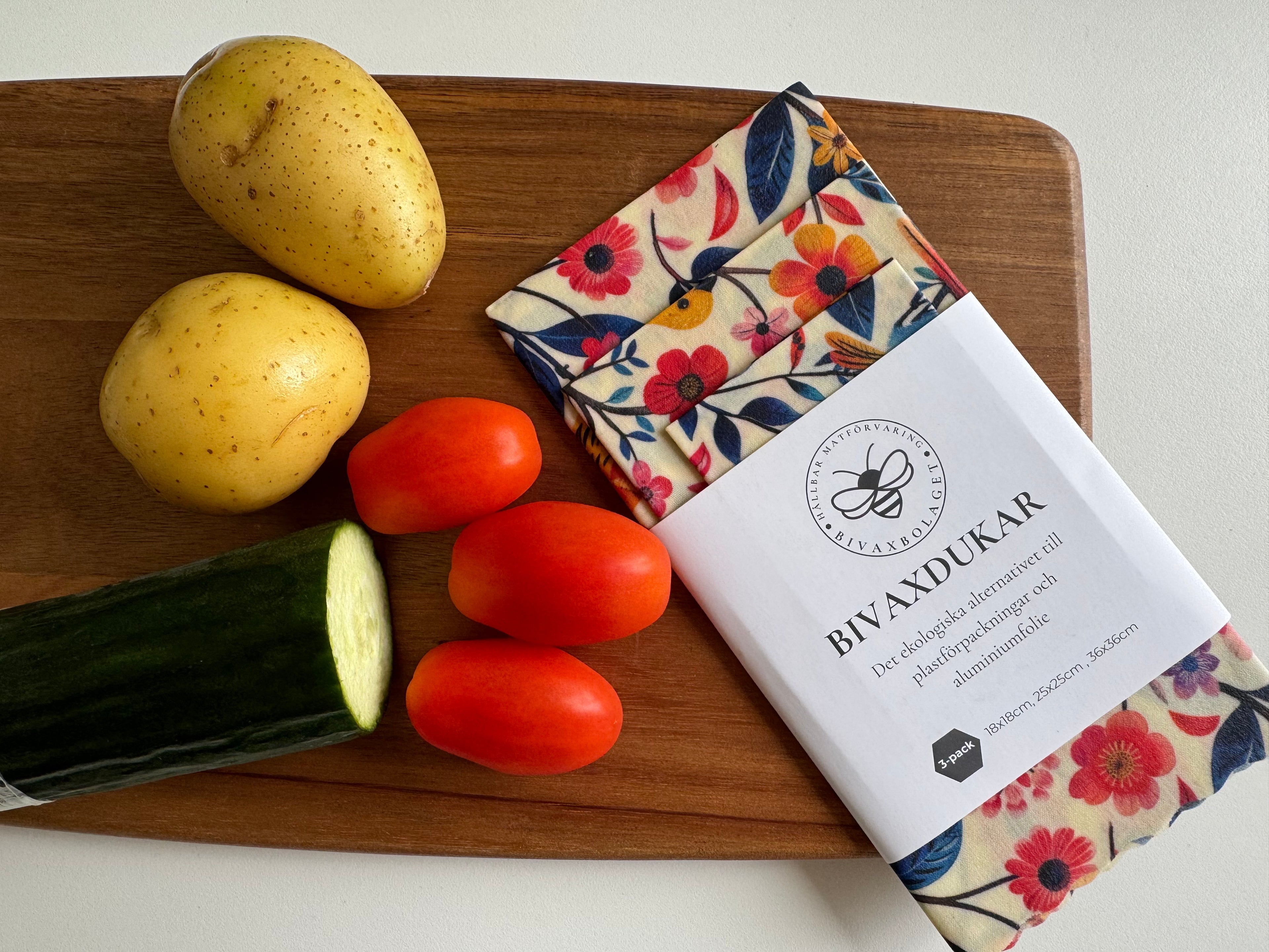 Bivaxdukar är inte bara ett klimatsmart val, eller ett sätt för dig att minska ditt matsvinn där hemma. De lyfter även hela känslan av att förvara mat, vilket gör det mer kul och mindre krångligt. För vi alla har varit med om envist plastfolie som inte rivs av där man vill. En påse tomater längst in i kylen som känns tråkig och långt ifrån inspirerande. Med bivaxdukar får du istället motsatsen - något kul som piggar upp när du ser dina grönsaker insvepta i det vackert mönstrade tyget.
